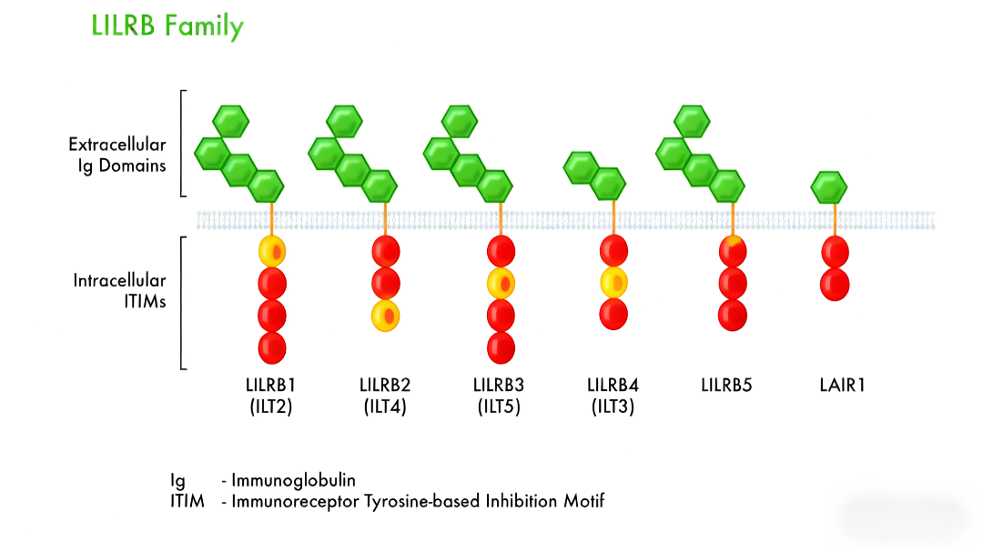 免疫球蛋白样转录子4(ILT4,亦称为CD85d或LILRB2)是免疫球蛋白超家族的抑制性受体,主要在髓系细胞中表达,包括单核细胞、巨噬细胞、树突状细胞和粒细胞。该受体通过其胞外免疫球蛋白样结构域与多种配体结合,胞内段含有免疫受体酪氨酸抑制基序(ITIM),可募集SHP‑1、SHP‑2等磷酸酶,向下游传递抑制信号,从而调节免疫细胞的活化与功能。