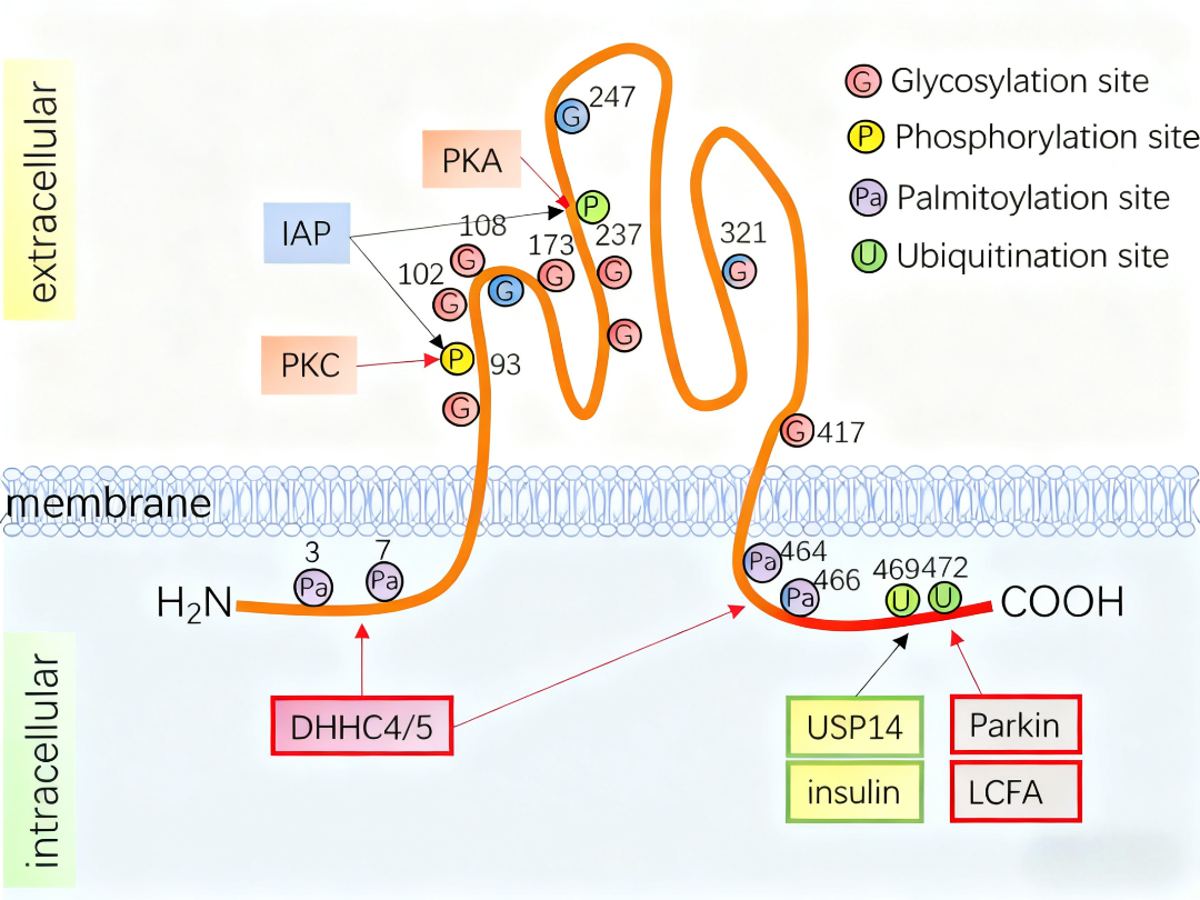 一、CD36的分子结构与翻译后修饰具有哪些特点?